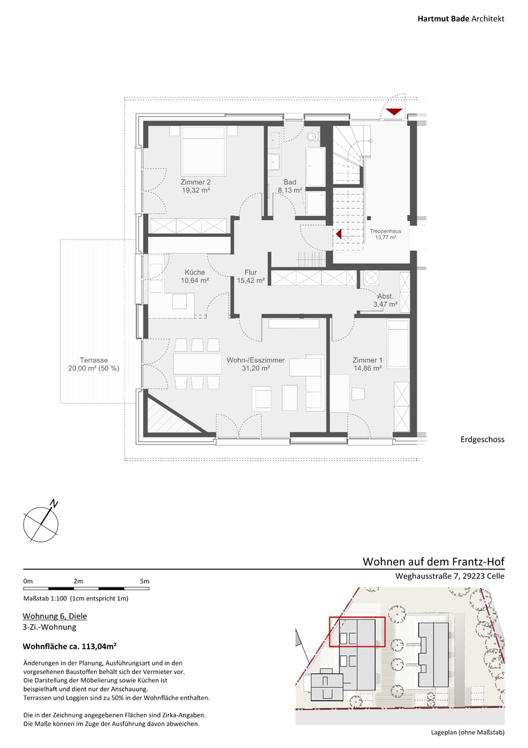 Terrasse 20 qm, davon 50 % WF: | 10,00 qm |