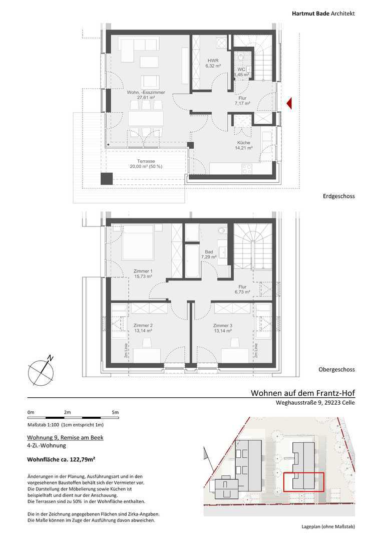 Die Wohnung bietet als Vierzimmerwohnung den Wohnkomfort eines Einfamilienhauses mit separatem Eingang und eigener Hausnummer. Der Eingang von der Bachseite im Nordosten erschließt das Haus. Von hier hat man einen herrlichen Blick über die Wiesen und Felder. Dem Flur schließen sich ein Gäste - WC und ein Hauswirtschaftsraum an. In südwestlicher Ausrichtung befinden sich lichtdurchflutet durch große bodentiefe Fensterelemte der Wohn- und Essbereich. Die Küche schließt sich dem Esszimmer an. Ebenfalls in südwestlicher Ausrichtung befindet sich die überdachte Terrasse mit einem sich anschließenden eigenen Gartenbereich. Im Obergeschoss befinden sich neben einem Badezimmer mit Dusche und Badewanne drei weitere Räume. Der komplett ausgebaute Dachboden kann als zusätzlicher Abstellraum genutzt werden.